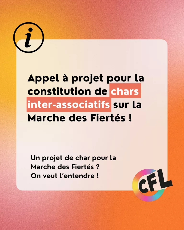 Vous êtes sur le site du Collectif des Fiertés en Luttes (CFL pour les gens qui en ont marre de le répéter), nous sommes l’association qui organise la Marche des Fiertés de Lyon depuis Novembre 2019. Nous avons à cœur de proposer une marche inclusive et forte de revendications pour nos communautés. Nous organisons aussi la Quinzaine des fiertés qui encadre la manifestation afin de créer des espaces autour de nos cultures et de nos arts pour nous permettre de nous rassembler lors de moments festifs et revendicatifs.